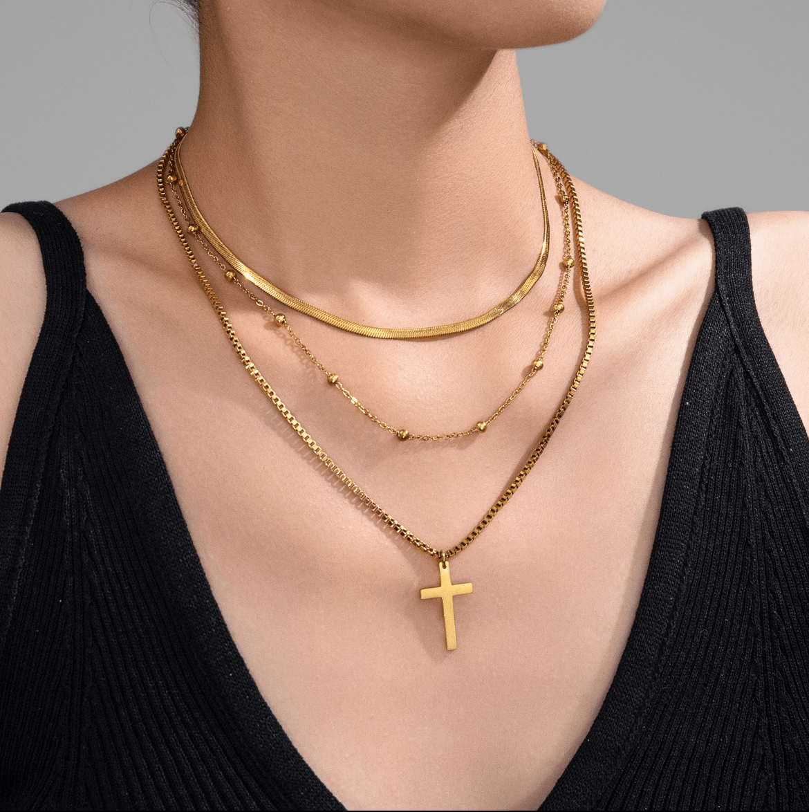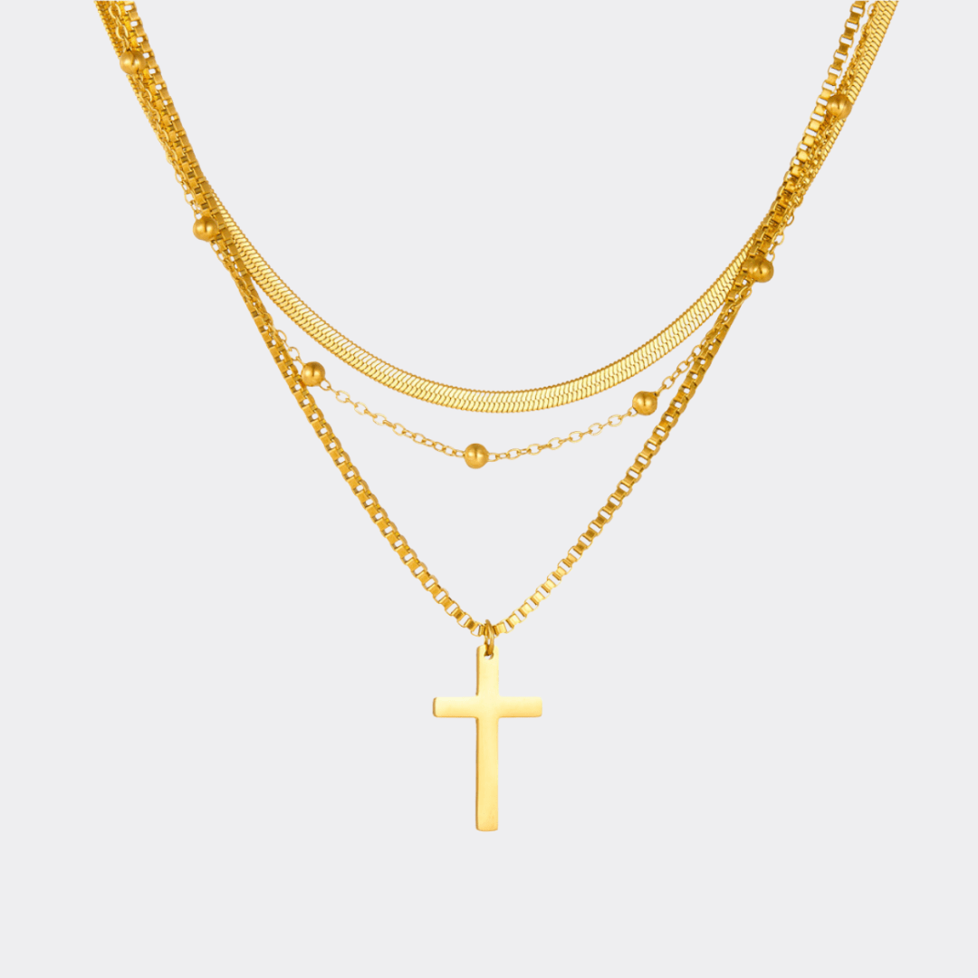 De Divina ketting is een eerbetoon aan geloof, elegantie en innerlijke kracht. Deze verfijnde, gelaagde ketting straalt tijdloze schoonheid uit met haar gouden glans en betekenisvolle ontwerp. Drie perfect afgestemde lagen, elk met hun eigen structuur en details, komen samen in een prachtig subtiel kruis – een symbool van hoop, bescherming en spirituele verbondenheid. Gemaakt van duurzaam roestvrij staal en verguld in een rijke gouden kleur, is Divina ontworpen om lang mee te gaan zonder te verkleuren. De ketting heeft een lengte van 40 cm met een verlengstuk van 5 cm, waardoor je hem moeiteloos aanpast aan elke halslijn of stijl. Dankzij het lichte gewicht van 16 gram draagt de ketting comfortabel de hele dag door, zonder in te leveren op uitstraling of kwaliteit.
