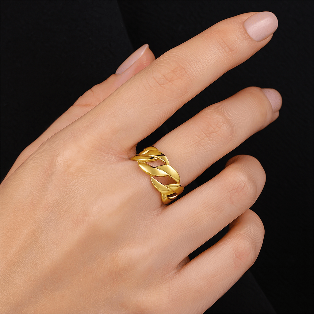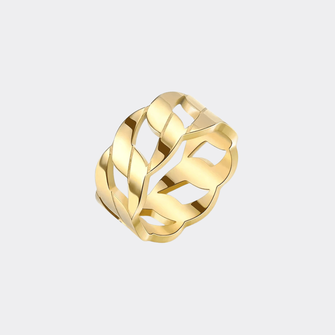 De Gina Ring is een verfijnd statement piece dat natuur en elegantie samenbrengt in een uniek design. Met haar sierlijke, opengewerkte bladpatroon straalt deze ring een tijdloze charme uit, perfect voor wie houdt van subtiele luxe met een vleugje originaliteit. Het organische ontwerp maakt de Gina Ring geschikt voor zowel dagelijks gebruik als speciale gelegenheden, waarbij ze moeiteloos te combineren is met andere sieraden. Vervaardigd uit hoogwaardig roestvrij staal en voorzien van een duurzame 18K goudlaag, blijft de ring langdurig mooi zonder te verkleuren. Voor liefhebbers van een koelere uitstraling is de Gina Ring ook verkrijgbaar in een elegante zilveren uitvoering. Het lichte en comfortabele ontwerp maakt dat de ring de hele dag door prettig draagt, terwijl de open structuur een luchtige, verfijnde look creëert. Of je nu kiest voor de warme glans van goud of de moderne frisheid van zilver, de Gina Ring is een veelzijdig sieraad dat je stijl naar een hoger niveau tilt.