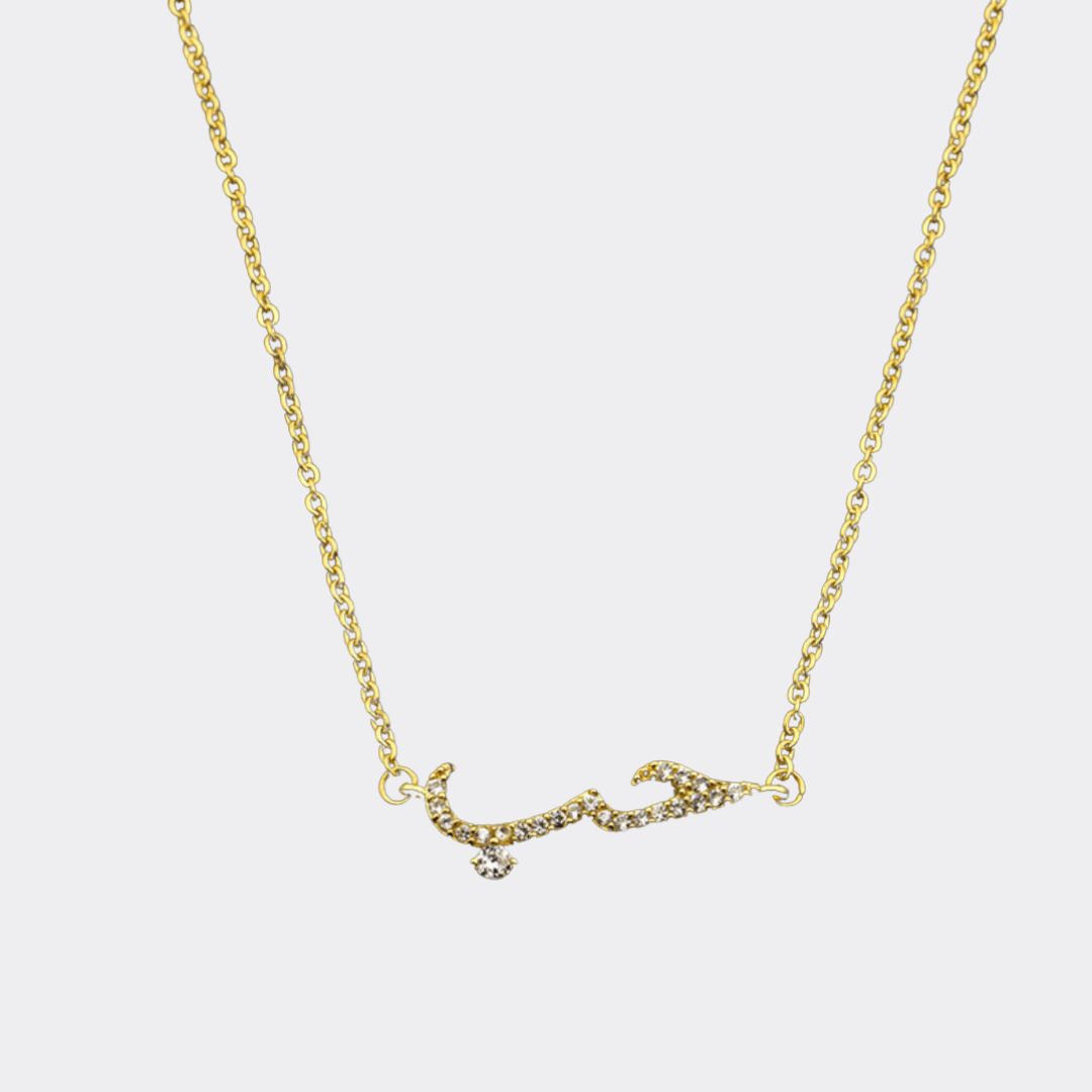 Ontdek onze elegante gouden ketting met het Arabische woord "حب" (liefde) ingelegd met sprankelende zirkonia steentjes. Deze verfijnde en betekenisvolle ketting is een prachtig symbool van liefde en verbondenheid. Perfect als cadeau of om zelf te dragen. Gemaakt van hoogwaardig roestvrij staal met luxe afwerking.