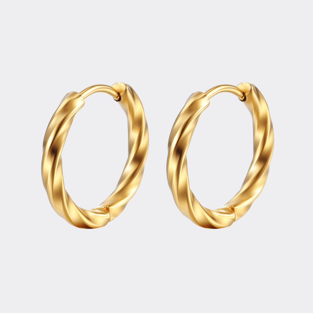 De Livia Hoops zijn elegante, gedraaide oorringen die een klassieke uitstraling combineren met een moderne twist. Gemaakt van hoogwaardig roestvrij staal en afgewerkt met een luxe 14k goudlaag, bieden deze oorringen een verfijnde glans die elke look naar een hoger niveau tilt. De subtiele draai in het ontwerp voegt een speels maar stijlvol element toe, waardoor de oorbellen perfect zijn voor zowel dagelijkse outfits als formele gelegenheden. Met een diameter van 17 mm zijn de Livia Hoops compact maar opvallend genoeg om een statement te maken. Dankzij het lichte gewicht en de stevige sluiting zijn ze comfortabel om te dragen, zelfs de hele dag door. Deze oorringen zijn hypoallergeen en bestand tegen verkleuring, zodat je er lang plezier van hebt.