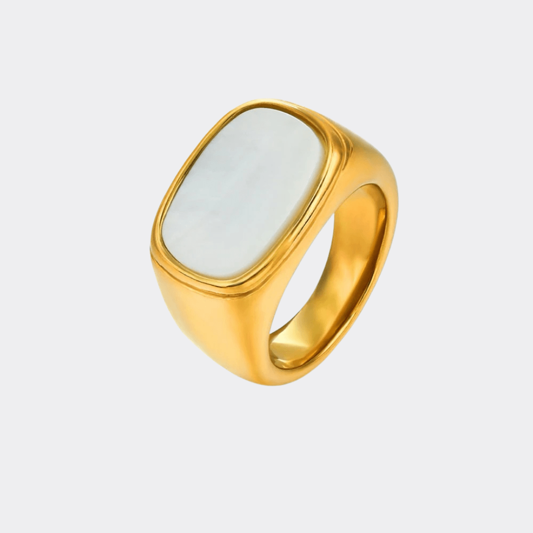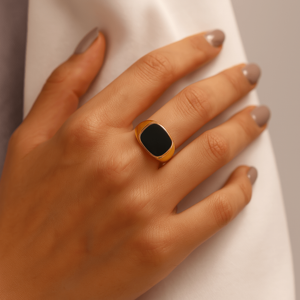 De Lyra Ring is een krachtig statementstuk dat luxe en minimalisme moeiteloos combineert. Met zijn robuuste vorm en glanzende onyxsteen straalt deze ring klasse en zelfvertrouwen uit. Het ontwerp is vervaardigd uit hoogwaardig roestvrij staal en afgewerkt met een duurzame 18K goudlaag, waardoor de ring zijn prachtige glans behoudt en bestand is tegen verkleuring. De diepe zwarte steen zorgt voor een tijdloze, mysterieuze uitstraling die zowel bij casual outfits als formele gelegenheden past. De Lyra Ring is ook verkrijgbaar in het zilver en een heldere witte steen, waardoor je de stijl kunt kiezen die het beste bij jouw persoonlijkheid past. Dankzij de hoogwaardige afwerking en het comfortabele draaggevoel is deze ring ideaal voor dagelijks gebruik of als opvallend accent bij speciale gelegenheden. Of je hem nu solo draagt als krachtig statement of combineert met andere sieraden voor een gelaagde look, de Lyra Ring voegt altijd een vleugje elegantie en charisma toe.