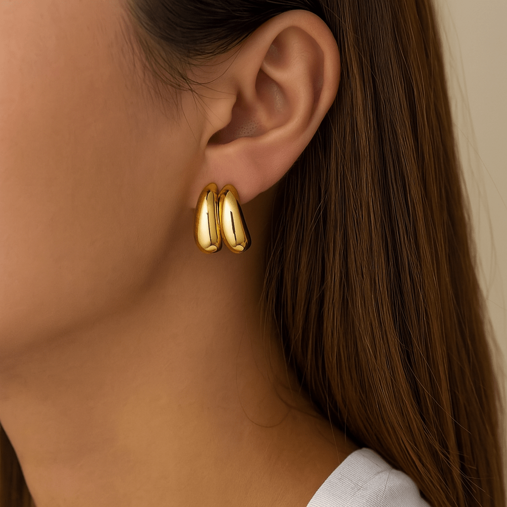 Laat je stijl spreken met Nara de perfecte balans tussen modern design en subtiele elegantie. Deze druppelvormige oorbellen met dubbele laag zijn verkrijgbaar in een verfijnde goud- of zilverkleurige afwerking, waardoor ze moeiteloos passen bij elke outfit, van casual tot chic. Het unieke, afgeronde ontwerp zorgt voor een speelse maar tijdloze uitstraling, ideaal voor dagelijks gebruik of een speciale gelegenheid. Gemaakt van hoogwaardige materialen en afgewerkt met een glanzende coating, zijn de Nara oorbellen niet alleen stijlvol, maar ook duurzaam. De compacte maat (13 mm hoog en 11 mm breed) maakt ze licht en comfortabel om te dragen. De perfecte ear candy voor wie houdt van minimalistische sieraden met een twist.