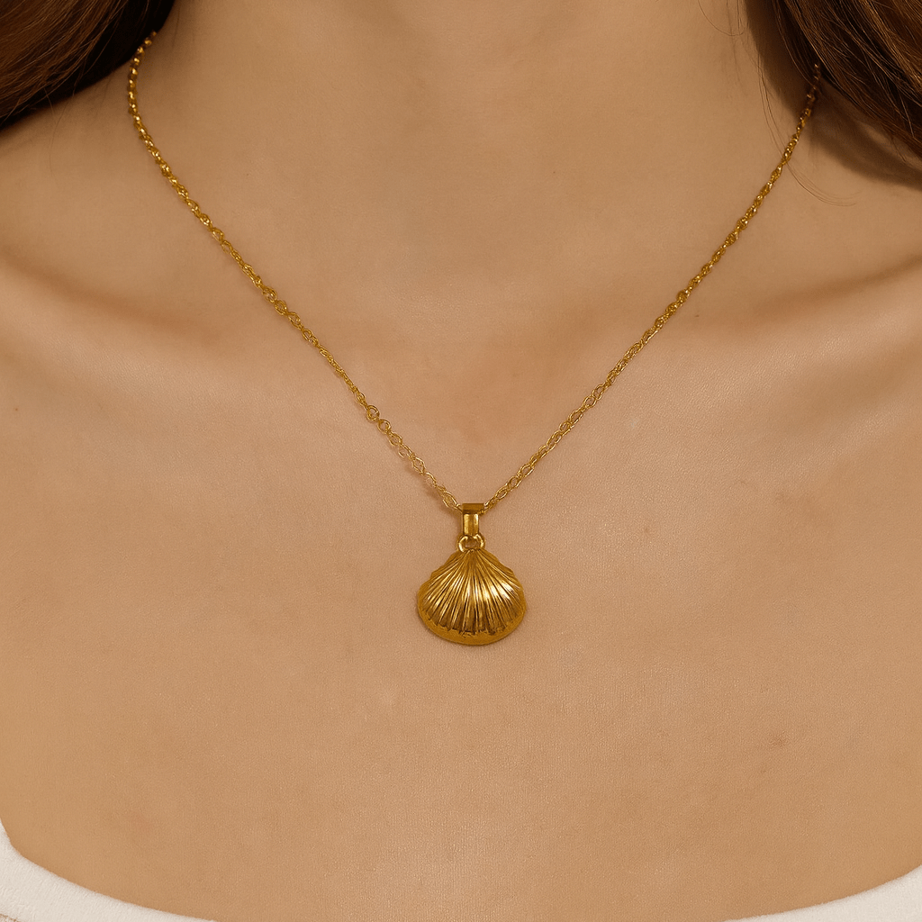 Breng de magie van de zee dichtbij met de Oceana Gouden Schelp Ketting. Deze verfijnde ketting is voorzien van een prachtige goudkleurige schelp-hanger die symbool staat voor elegantie, kracht en natuurlijke schoonheid. Gemaakt van hoogwaardig roestvrij staal met een duurzame vergulde afwerking, is dit sieraad bestand tegen verkleuring en perfect voor dagelijks gebruik. De subtiele glans van de hanger en de fijne schakels van de ketting zorgen voor een stijlvolle en tijdloze uitstraling die moeiteloos te combineren is met elke outfit. Draag het solo voor een minimalistische look of combineer met andere kettingen voor een trendy layered effect. De Oceana ketting is een must-have accessoire voor liefhebbers van de zee, stranddagen en zonovergoten vibes. Ook ideaal als betekenisvol cadeau voor iemand die houdt van natuurlijke elementen en classy sieraden. Of je nu een casual outfit draagt of jezelf voorbereidt op een speciale gelegenheid, deze ketting geeft elke look een elegante en zomerse touch. Voeg een vleugje kustinspiratie toe aan je sieradencollectie met deze unieke schelpenketting.