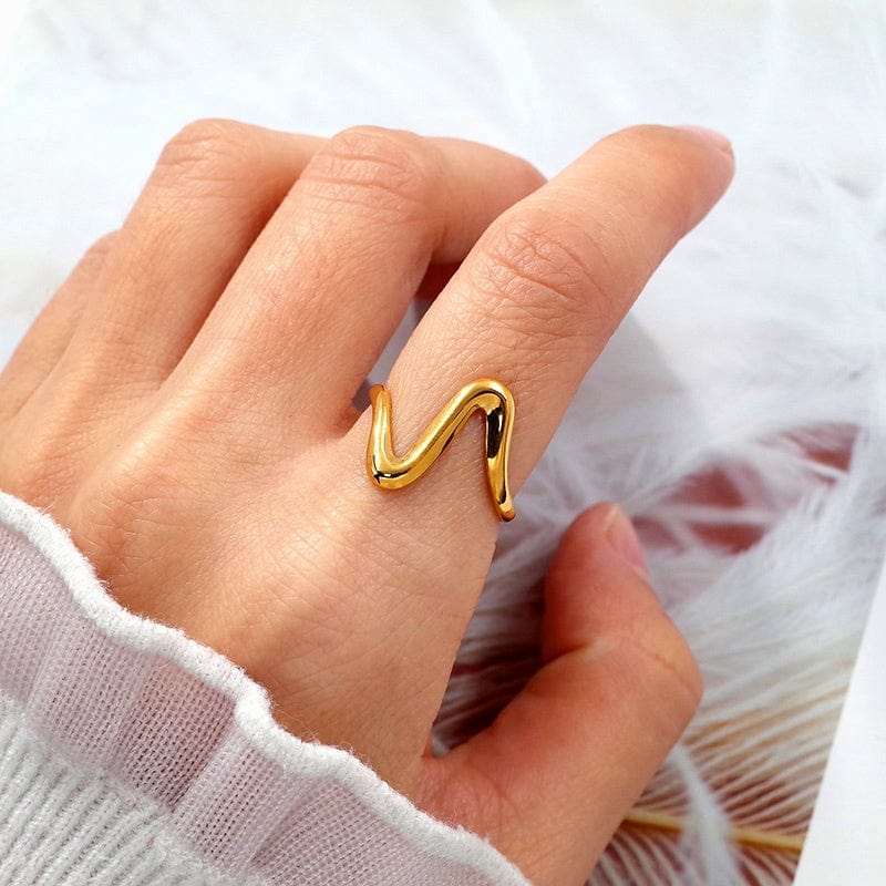De Wave Ring is een ode aan minimalistische elegantie met een speelse twist. Het golvende ontwerp, subtiel en vloeiend, symboliseert beweging en balans. Vervaardigd uit hoogwaardig roestvrij staal en afgewerkt met een luxe 18K vergulde laag, biedt deze ring een duurzame glans die bestand is tegen dagelijks dragen. Dankzij het open design is de ring eenvoudig verstelbaar, waardoor hij comfortabel past om vrijwel iedere vinger. De Wave Ring is perfect voor liefhebbers van moderne sieraden met een artistiek karakter. Combineer hem met andere minimalistische ringen voor een trendy layered look, of draag hem solo als verfijnd statement piece. Het tijdloze ontwerp maakt hem geschikt voor elke gelegenheid — van casual outfits tot chique avondkleding. Een prachtig cadeau voor jezelf of iemand die je dierbaar is, en een stijlvolle aanvulling op elke sieradencollectie. Met de Wave Ring draag je altijd een vleugje elegantie dat nooit uit de mode raakt.