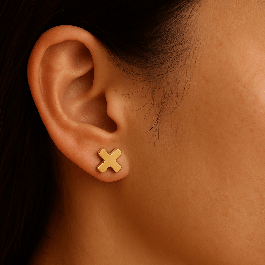Xara Oorbellen – minimalistische oorstekers met een strakke kruisvorm die moderne elegantie en verfijnde eenvoud uitstralen. Perfect voor dagelijks gebruik of als subtiele toevoeging aan een trendy ear stack.